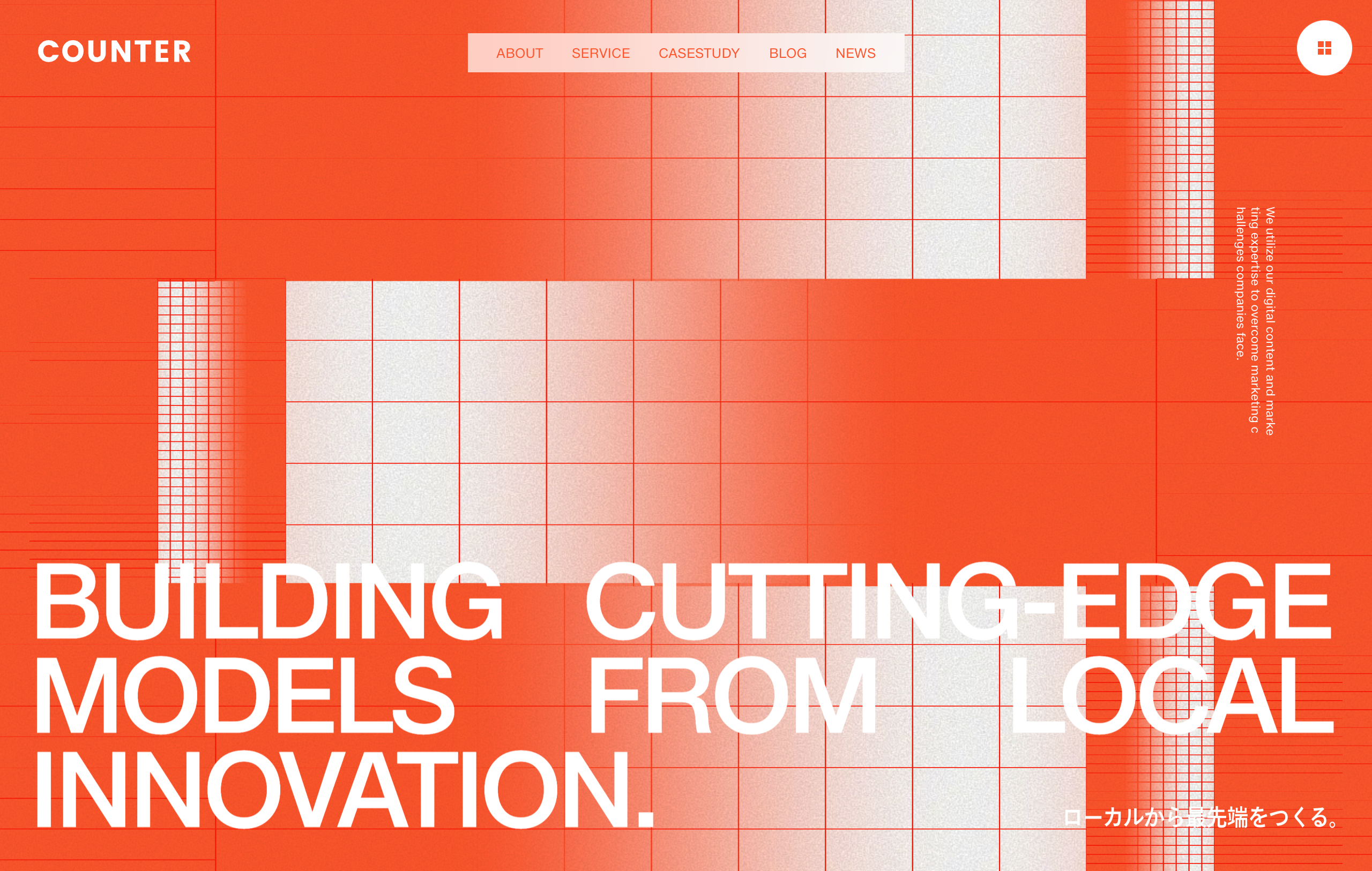 コンセプトは「構造化されたカオス」。全体のトーンをコーポレートカラーのオレンジで統一。混沌と規則性のバランスに、クリエイティブとデジタルマーケティングの二軸やっていく会社の姿勢と、挑戦的な息吹を感じます。今回制作を担当したARUTEGAさんのコンセプトマップが公開されているのですが、なんと「よく使う口癖」からキャラクターを作り、トーンとデザイン要件を制定、コンセプトを固めていくといった、ミクロからマクロをかたちづくっていく鮮やかな手法に驚きました。COUNTERさんは埼玉県越谷市を起点に活動している会社で、ミッションは「ローカルから最先端を作る」。ローカル視点を持った会社という点でも、注目していきたい会社ですね。
