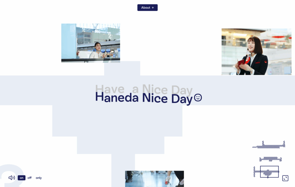 訪れる人々へ、「今日が素敵な一日になりますように」という思いを込めて制作された「Haneda Nice Day」。三つのターミナル各所にある「働く人たちの心遣い」「気持ちいい瞬間」を体験できるようになっているのですが、注目したいのは、極めて文字情報が少ないこと。気持ちのいい日って言葉では語れなくて、もっと澄んだ空気とか、青い空とか、遠くから聞こえる物音などから感じ取れたりしますよね。このサイトではその「なんとなくの心地よさ」がサイト全体を包んでいる。そこがまさに空港を訪れたときの「あの雰囲気」を出しているように感じました。訪れるだけで気分が軽やかになるサイトです。