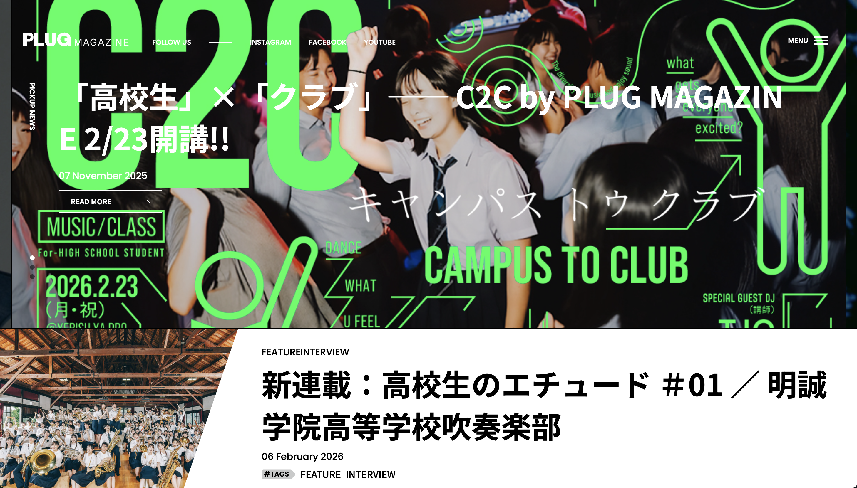 広告ほど過激ではないものの、こちらも型にはまらない雑誌がPLUG MAGAZINE。岡山発の雑誌でありながら、地方誌と全国誌を混在させたバランスを打ち出しています。Webサイトは最小限の機能に絞り込んだダイナミックなレイアウトです。
