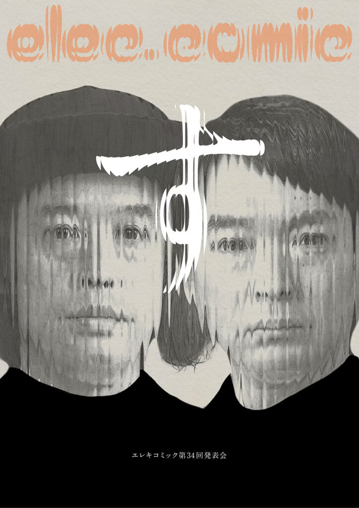まず、エレキコミックの『す』ですが、このフライヤー、写真を加工したものだと思いますよね?実は違うんです。これはアーティストの目黒ケイさんが描いた人物画なんです。しかも写実的に描くばかりか、モザイクガラスのような加工の仕方まで写実的。二枚目の二匹並んだ犬も同様に目黒さんの仕業で、圧倒的な筆致で静かなインパクトを放っていますね。ちなみにこの犬ちゃんたちは、やついさんの愛犬「こぶし」と「こはだ」。