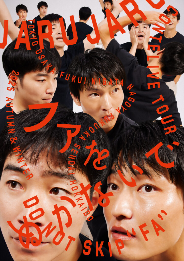 前回に続いてジャルジャルです。彼らのフライヤーでは、コントの登場人物であるふたりをビジュアルの軸に、毎回不可思議でファニーな世界観をつくりあげています。『ファを抜かないで』はAYONDの佐々木俊さんのデザイン。増殖するジャルジャルと、迷子のようなテキストでとぼけた雰囲気が出ています。