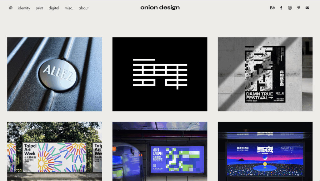 Webデザインが続きましたが、ここからはグラフィック寄りの2社を紹介します。台湾のグラフィックデザインシーンを長年支えてきた、1999年創業のまさに老舗中の老舗のOnion Design Associates。Grammy賞ベストアルバムパッケージ部門に3度ノミネート、金曲奨のアルバムデザイン賞も受賞するなど、その評価は台湾国内にとどまりません。