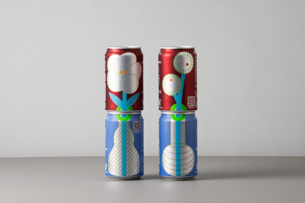 台湾の老舗サイダーブランド・黒松(HeySong)と誠品書店のコラボパッケージ。「分かち合いたい気持ち」を起点に、花と花瓶のモチーフで2ブランドの精神を表現した4種のボトルデザイン。組み合わせることで4通りのコンビネーションが楽しめる仕掛けも込みで、Behanceでも大きな話題を呼びました。