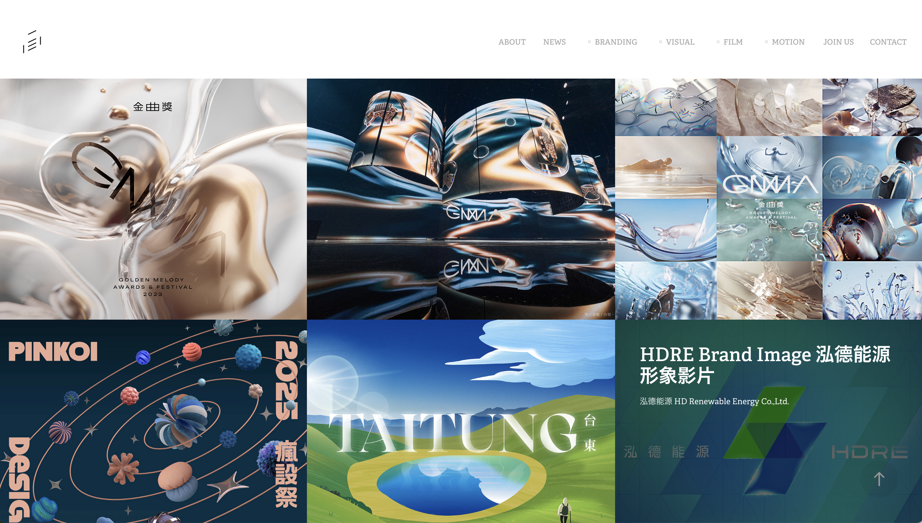 水墨画専攻出身のファウンダー・王宗欣(Cowper Wang)さんが「アートと商業の境界をなくしたい」と立ち上げたスタジオ。水墨画専攻からデジタルクリエイティブへ、という経歴がすでに面白い。スタジオ名の「Do something different, do something fun」、そのまま仕事のスタイルになっているのが、いいですよね。映画・音楽・テレビ、台湾の三大授賞式「三金」すべての式典ビジュアルを手がけてきた実績が、その存在感を物語っています。